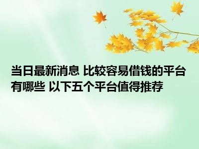 比较容易借钱的平台有哪些 以下五个平台值得推荐现在是大家比较关注的,因为目前比较容易借钱的平台有哪些 以下五个平台值得推荐的热度是相对比较高的,那么既然大家对此都比较感兴趣,小S也是特地到网上去查找了一些相关的信息,下面就由小S来把这些信息来分享给大家一起查阅吧。