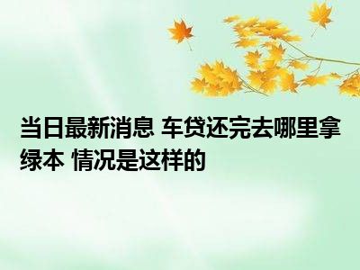 车贷还完去哪里拿绿本 情况是这样的现在是大家比较关注的,因为目前车贷还完去哪里拿绿本 情况是这样的的热度是相对比较高的,那么既然大家对此都比较感兴趣,小S也是特地到网上去查找了一些相关的信息,下面就由小S来把这些信息来分享给大家一起查阅吧。