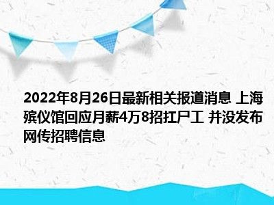 - 2022-08-26当日最新消息 上海殡仪馆回应月薪4万8招扛尸工 并没发布网传招聘信息