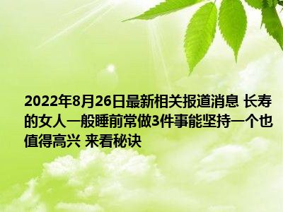 - 2022-08-26当日最新消息 长寿的女人一般睡前常做3件事能坚持一个也值得高兴 来看秘诀