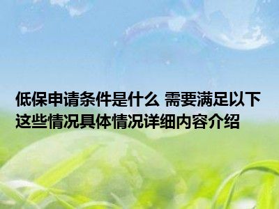 导读 想必大家现在对于低保申请条件是什么 需要满足以下这些情况方面的消息都是比较想了解的吧,那么针对于低保申请条件是什么 需要满足以下...