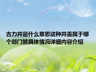 导读想必大家现在对于古力井是什么意思这种井盖属于哪个部门管方面的消息都是比较想了解的吧,那么针对于古力井是什么意思这种井盖属于哪个部...