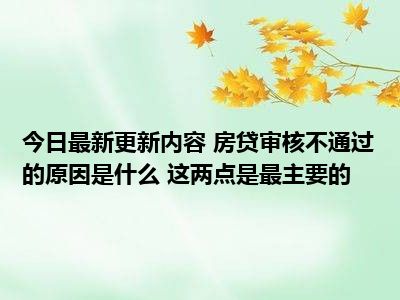 目前房贷审核不通过的原因是什么 这两点是最主要的的关注度特别高,热度非常高,这也证明大家现在都在关注这个事情,那么具体的房贷审核不通过的原因是什么 这两点是最主要的的事情是怎么回事呢,小编收集了一些相关的内容来给大家一起查阅一下把。