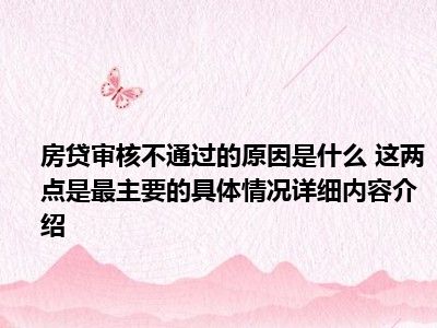想必大家现在对于房贷审核不通过的原因是什么 这两点是最主要的方面的消息都是比较想了解的吧,那么针对于房贷审核不通过的原因是什么 这两点是最主要的方面的消息,小西自然是收集了一些相关方面的消息,那么如果您感兴趣的话,可以看下下面小西为大家收集到与房贷审核不通过的原因是什么 这两点是最主要的相关的消息吧。