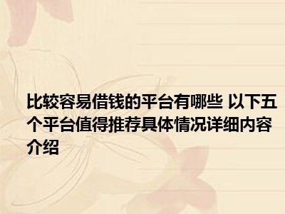 导读 想必大家现在对于比较容易借钱的平台有哪些 以下五个平台值得推荐方面的消息都是比较想了解的吧,那么针对于比较容易借钱的平台有哪些 ...