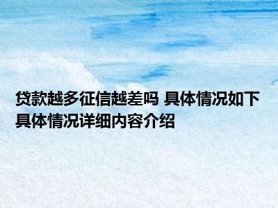 想必大家现在对于贷款越多征信越差吗 具体情况如下方面的消息都是比较想了解的吧,那么针对于贷款越多征信越差吗 具体情况如下方面的消息,小西自然是收集了一些相关方面的消息,那么如果您感兴趣的话,可以看下下面小西为大家收集到与贷款越多征信越差吗 具体情况如下相关的消息吧。
