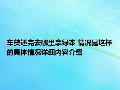 导读 想必大家现在对于车贷还完去哪里拿绿本 情况是这样的方面的消息都是比较想了解的吧,那么针对于车贷还完去哪里拿绿本 情况是这样的方面...