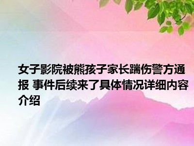 想必大家现在对于女子影院被熊孩子家长踹伤警方通报 事件后续来了方面的消息都是比较想了解的吧,那么针对于女子影院被熊孩子家长踹伤警方通报 事件后续来了方面的消息,小西自然是收集了一些相关方面的消息,那么如果您感兴趣的话,可以看下下面小西为大家收集到与女子影院被熊孩子家长踹伤警方通报 事件后续来了相关的消息吧。