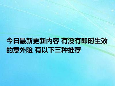 目前有没有即时生效的意外险 有以下三种推荐的关注度特别高,热度非常高,这也证明大家现在都在关注这个事情,那么具体的有没有即时生效的意外险 有以下三种推荐的事情是怎么回事呢,小编收集了一些相关的内容来给大家一起查阅一下把。