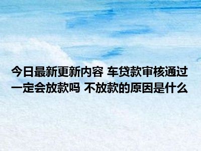 目前车贷款审核通过一定会放款吗 不放款的原因是什么的关注度特别高,热度非常高,这也证明大家现在都在关注这个事情,那么具体的车贷款审核通过一定会放款吗 不放款的原因是什么的事情是怎么回事呢,小编收集了一些相关的内容来给大家一起查阅一下把。