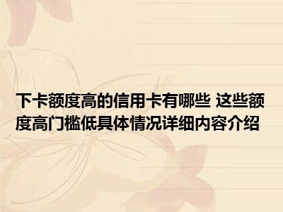 想必大家现在对于下卡额度高的信用卡有哪些 这些额度高门槛低方面的消息都是比较想了解的吧,那么针对于下卡额度高的信用卡有哪些 这些额度高门槛低方面的消息,小西自然是收集了一些相关方面的消息,那么如果您感兴趣的话,可以看下下面小西为大家收集到与下卡额度高的信用卡有哪些 这些额度高门槛低相关的消息吧。
