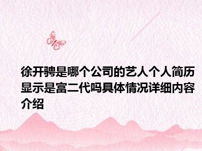 导读想必大家现在对于徐开骋是哪个公司的艺人个人简历显示是富二代吗方面的消息都是比较想了解的吧,那么针对于徐开骋是哪个公司的艺人个人简...