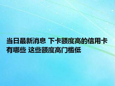 下卡额度高的信用卡有哪些 这些额度高门槛低现在是大家比较关注的,因为目前下卡额度高的信用卡有哪些 这些额度高门槛低的热度是相对比较高的,那么既然大家对此都比较感兴趣,小S也是特地到网上去查找了一些相关的信息,下面就由小S来把这些信息来分享给大家一起查阅吧。