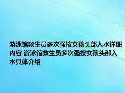1、想必大家现在对于游泳馆救生员多次强按女孩头部入水方面的信息都是比较想了解的吧,那么针对于游泳馆救生员多次强按女孩头部入水方面的信息,小西自然是收集了一些相关方面的信息,那么如果您感兴趣的话,可以看下下面小西为大家收集到与游泳馆救生员多次强按女孩头部入水相关的信息吧。