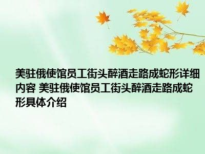 1、想必大家现在对于美驻俄使馆员工街头醉酒走路成蛇形方面的信息都是比较想了解的吧,那么针对于美驻俄使馆员工街头醉酒走路成蛇形方面的信息,小西自然是收集了一些相关方面的信息,那么如果您感兴趣的话,可以看下下面小西为大家收集到与美驻俄使馆员工街头醉酒走路成蛇形相关的信息吧。