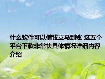 想必大家现在对于什么软件可以借钱立马到账 这五个平台下款非常快方面的消息都是比较想了解的吧,那么针对于什么软件可以借钱立马到账 这五个平台下款非常快方面的消息,小西自然是收集了一些相关方面的消息,那么如果您感兴趣的话,可以看下下面小西为大家收集到与什么软件可以借钱立马到账 这五个平台下款非常快相关的消息吧。