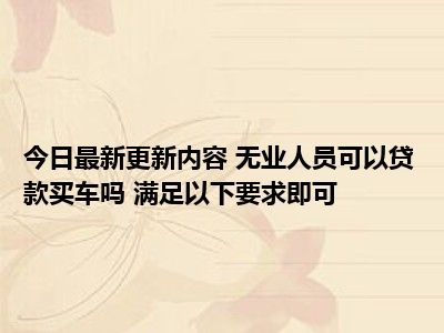 目前无业人员可以贷款买车吗 满足以下要求即可的关注度特别高,热度非常高,这也证明大家现在都在关注这个事情,那么具体的无业人员可以贷款买车吗 满足以下要求即可的事情是怎么回事呢,小编收集了一些相关的内容来给大家一起查阅一下把。