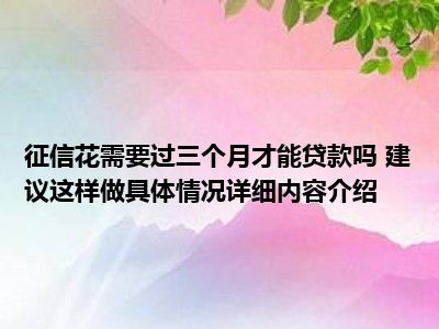 导读 想必大家现在对于征信花需要过三个月才能贷款吗 建议这样做方面的消息都是比较想了解的吧,那么针对于征信花需要过三个月才能贷款吗 建...