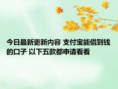 目前支付宝能借到钱的口子 以下五款都申请看看的关注度特别高,热度非常高,这也证明大家现在都在关注这个事情,那么具体的支付宝能借到钱的口子 以下五款都申请看看的事情是怎么回事呢,小编收集了一些相关的内容来给大家一起查阅一下把。