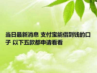 支付宝能借到钱的口子 以下五款都申请看看现在是大家比较关注的,因为目前支付宝能借到钱的口子 以下五款都申请看看的热度是相对比较高的,那么既然大家对此都比较感兴趣,小S也是特地到网上去查找了一些相关的信息,下面就由小S来把这些信息来分享给大家一起查阅吧。