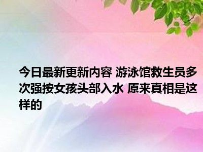 导读 目前游泳馆救生员多次强按女孩头部入水 原来真相是这样的!的关注度特别高,热度非常高,这也证明大家现在都在关注这个事情,那么具体的...