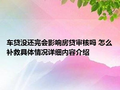 - 车贷没还完会影响房贷审核吗 怎么补救具体情况详细内容介绍