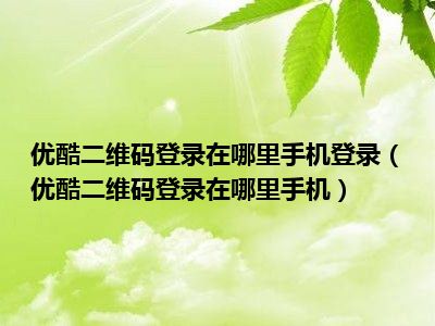 导读目前是有很多朋友们对于优酷二维码登录在哪里手机这个信息比较感兴趣,那么小编也是收集了一些优酷二维码登录在哪里手机相关的信息来分享给...