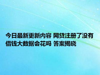 目前网贷注册了没有借钱大数据会花吗 答案揭晓的关注度特别高,热度非常高,这也证明大家现在都在关注这个事情,那么具体的网贷注册了没有借钱大数据会花吗 答案揭晓的事情是怎么回事呢,小编收集了一些相关的内容来给大家一起查阅一下把。