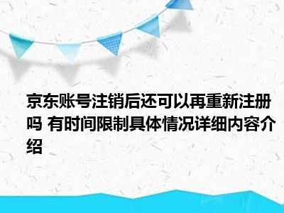 导读 想必大家现在对于京东账号注销后还可以再重新注册吗 有时间限制方面的消息都是比较想了解的吧,那么针对于京东账号注销后还可以再重新注...