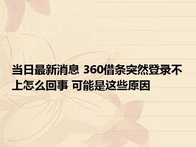360借条突然登录不上怎么回事 可能是这些原因现在是大家比较关注的,因为目前360借条突然登录不上怎么回事 可能是这些原因的热度是相对比较高的,那么既然大家对此都比较感兴趣,小S也是特地到网上去查找了一些相关的信息,下面就由小S来把这些信息来分享给大家一起查阅吧。