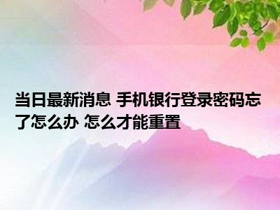 导读 手机银行登录密码忘了怎么办 怎么才能重置现在是大家比较关注的,因为目前手机银行登录密码忘了怎么办 怎么才能重置的热度是相对比较高...