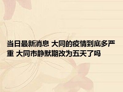 导读 大同的疫情到底多严重 大同市静默期改为五天了吗现在是大家比较关注的,因为目前大同的疫情到底多严重 大同市静默期改为五天了吗的热度