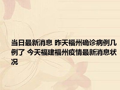 导读 昨天福州确诊病例几例了 今天福建福州疫情最新消息状况现在是大家比较关注的,因为目前昨天福州确诊病例几例了 今天福建福州疫情最新消...