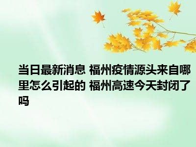 导读 福州疫情源头来自哪里怎么引起的 福州高速今天封闭了吗现在是大家比较关注的,因为目前福州疫情源头来自哪里怎么引起的 福州高速今天封...