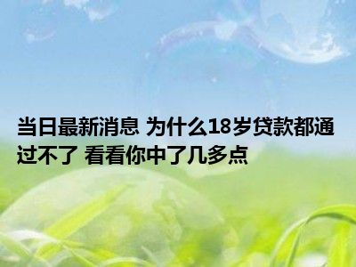 为什么18岁贷款都通过不了 看看你中了几多点现在是大家比较关注的,因为目前为什么18岁贷款都通过不了 看看你中了几多点的热度是相对比较高的,那么既然大家对此都比较感兴趣,小S也是特地到网上去查找了一些相关的信息,下面就由小S来把这些信息来分享给大家一起查阅吧。
