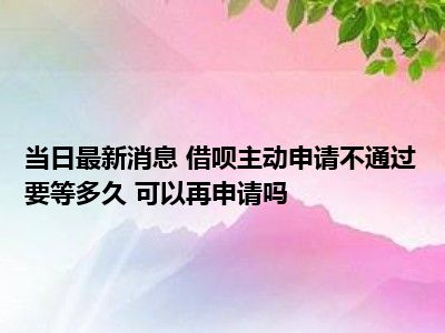 借呗主动申请不通过要等多久 可以再申请吗现在是大家比较关注的,因为目前借呗主动申请不通过要等多久 可以再申请吗的热度是相对比较高的,那么既然大家对此都比较感兴趣,小S也是特地到网上去查找了一些相关的信息,下面就由小S来把这些信息来分享给大家一起查阅吧。