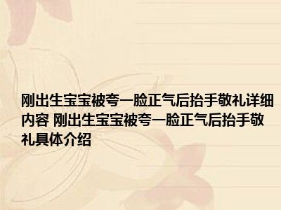 1、想必大家现在对于刚出生宝宝被夸一脸正气后抬手敬礼方面的信息都是比较想了解的吧,那么针对于刚出生宝宝被夸一脸正气后抬手敬礼方面的信息,小西自然是收集了一些相关方面的信息,那么如果您感兴趣的话,可以看下下面小西为大家收集到与刚出生宝宝被夸一脸正气后抬手敬礼相关的信息吧。