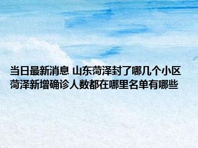 - 当日最新消息 山东菏泽封了哪几个小区 菏泽新增确诊人数都在哪里名单有哪些