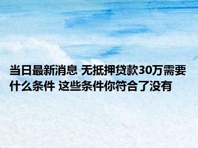 导读 无抵押贷款30万需要什么条件 这些条件你符合了没有现在是大家比较关注的,因为目前无抵押贷款30万需要什么条件 这些条件你符合了没有的...