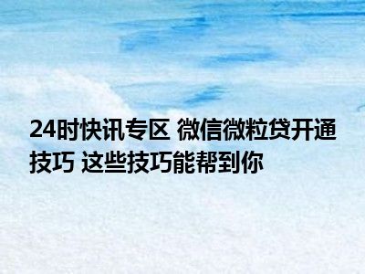 导读 今天关于24时快讯专区 微信微粒贷开通技巧 这些技巧能帮到你!的热度相当高,大家目前都对于24时快讯专区 微信微粒贷开通技巧 这些技巧...