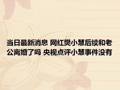 网红樊小慧后续和老公离婚了吗 央视点评小慧事件没有现在是大家比较关注的,因为目前网红樊小慧后续和老公离婚了吗 央视点评小慧事件没有的热度是相对比较高的,那么既然大家对此都比较感兴趣,小S也是特地到网上去查找了一些相关的信息,下面就由小S来把这些信息来分享给大家一起查阅吧。