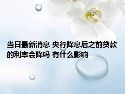 央行降息后之前贷款的利率会降吗 有什么影响现在是大家比较关注的,因为目前央行降息后之前贷款的利率会降吗 有什么影响的热度是相对比较高的,那么既然大家对此都比较感兴趣,小S也是特地到网上去查找了一些相关的信息,下面就由小S来把这些信息来分享给大家一起查阅吧。