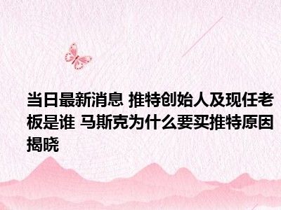 导读 推特创始人及现任老板是谁 马斯克为什么要买推特原因揭晓现在是大家比较关注的,因为目前推特创始人及现任老板是谁 马斯克为什么要买推...