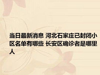 - 当日最新消息 河北石家庄已封闭小区名单有哪些 长安区确诊者是哪里人