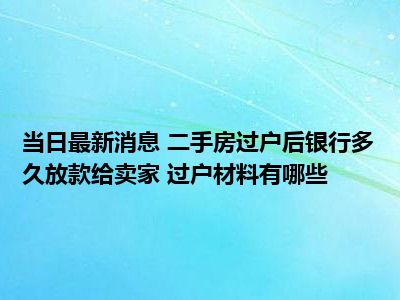 导读 二手房过户后银行多久放款给卖家 过户材料有哪些现在是大家比较关注的,因为目前二手房过户后银行多久放款给卖家 过户材料有哪些的热度...