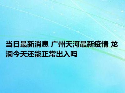 广州天河最新疫情 龙洞今天还能正常出入吗现在是大家比较关注的,因为目前广州天河最新疫情 龙洞今天还能正常出入吗的热度是相对比较高的,那么既然大家对此都比较感兴趣,小S也是特地到网上去查找了一些相关的信息,下面就由小S来把这些信息来分享给大家一起查阅吧。