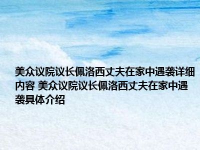 - 美众议院议长佩洛西丈夫在家中遇袭详细内容 美众议院议长佩洛西丈夫在家中遇袭具体介绍