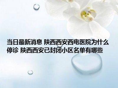 导读 陕西西安西电医院为什么停诊 陕西西安已封闭小区名单有哪些现在是大家比较关注的,因为目前陕西西安西电医院为什么停诊 陕西西安已封闭...