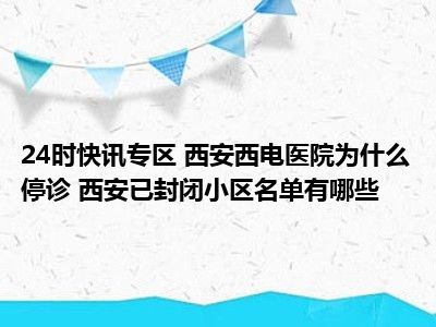 今天关于24时快讯专区 西安西电医院为什么停诊 西安已封闭小区名单有哪些的热度相当高,大家目前都对于24时快讯专区 西安西电医院为什么停诊 西安已封闭小区名单有哪些很关注,那么为此小编也是特地在网上找了一些关于24时快讯专区 西安西电医院为什么停诊 西安已封闭小区名单有哪些的相关内容,那么接下来就分享给大家吧。