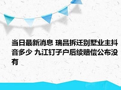 瑞昌拆迁别墅业主抖音多少 九江钉子户后续赔偿公布没有现在是大家比较关注的,因为目前瑞昌拆迁别墅业主抖音多少 九江钉子户后续赔偿公布没有的热度是相对比较高的,那么既然大家对此都比较感兴趣,小S也是特地到网上去查找了一些相关的信息,下面就由小S来把这些信息来分享给大家一起查阅吧。